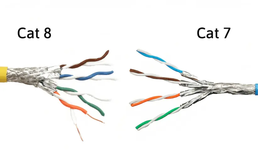 Cat7 focuses more on reducing crosstalk, while Cat8 combines shielding and higher bandwidth for more complex connections.