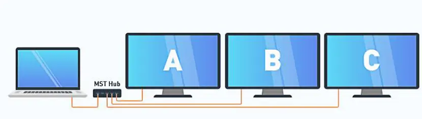 MST technology splits a single video signal into multiple streams that can be displayed independently on the connected displays. Users can connect multiple displays through a single DisplayPort (DP) port to create a larger and more immersive workspace.